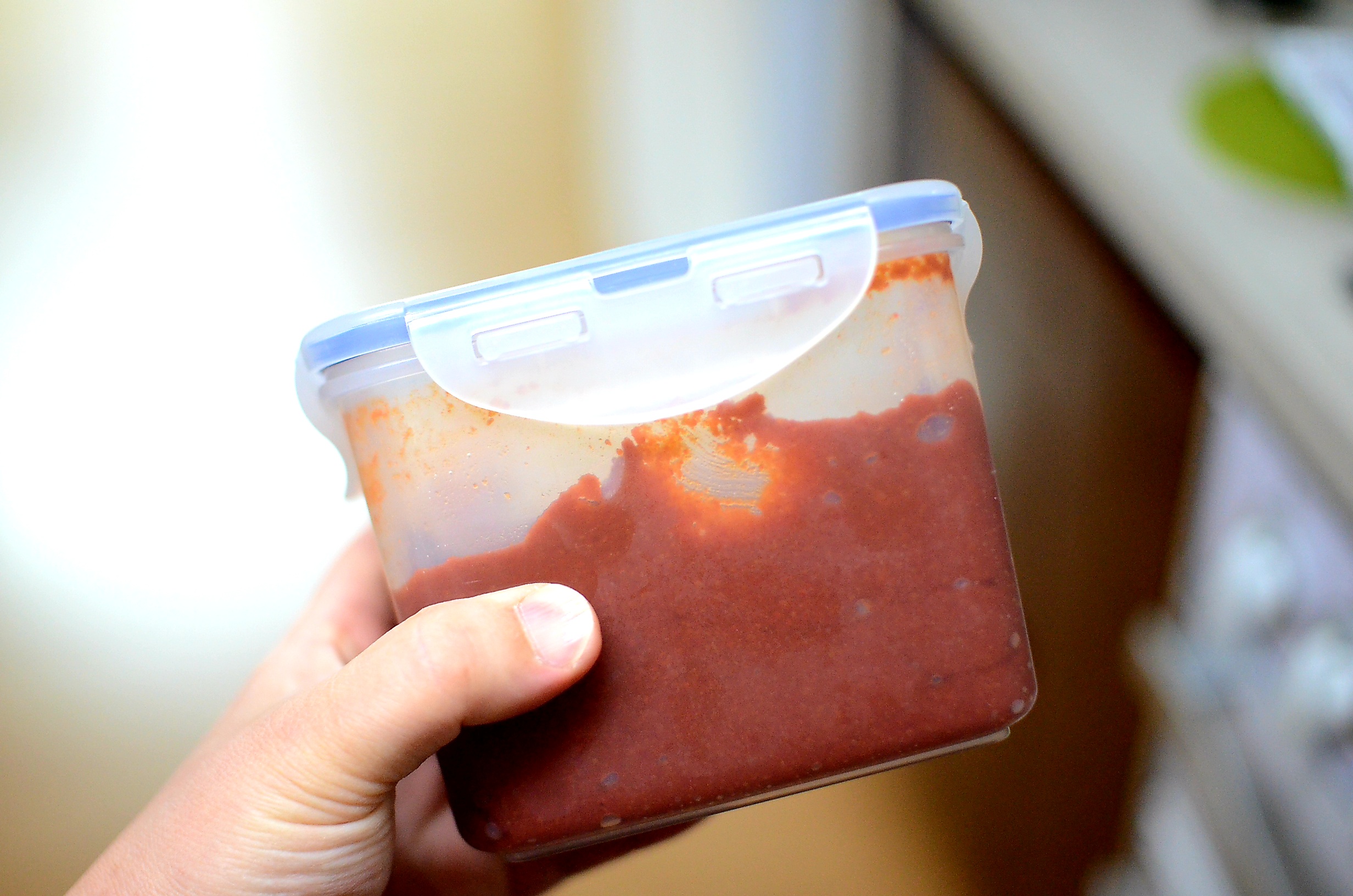 간장 2-3, 고추장 1 (어른용은 2), 물약간, 마늘, 설탕 1, 물엿 2