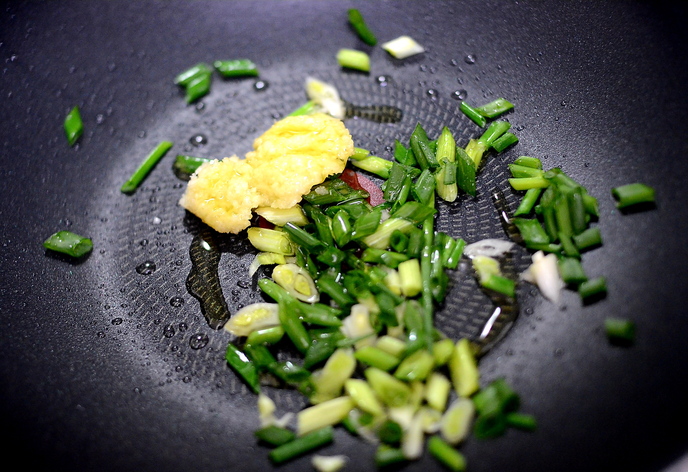 웍에 마늘과 파를 넣고 볶다가