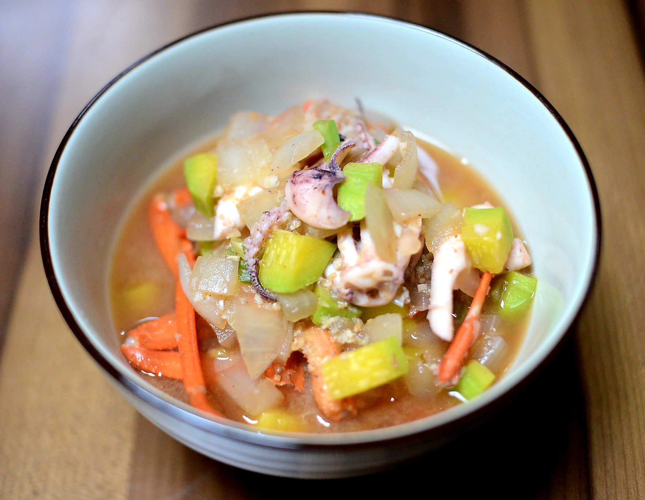 라면용으로 열려 두었던 홍게 다리와 오징어등을 넣고 해물 된장찌개도 한번 끓여 봅니다.