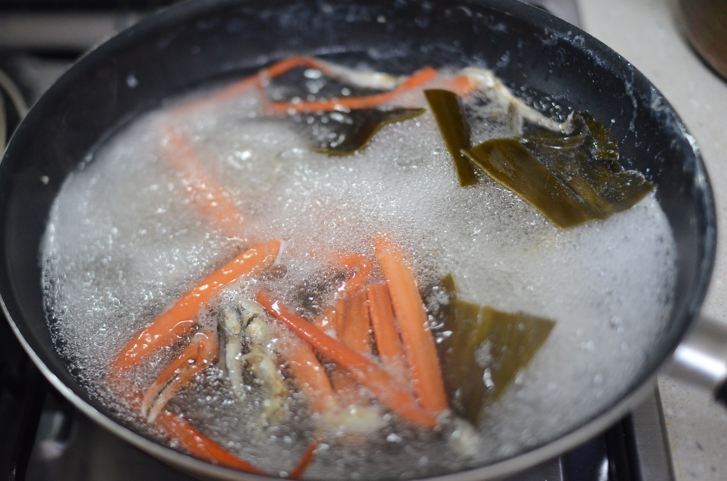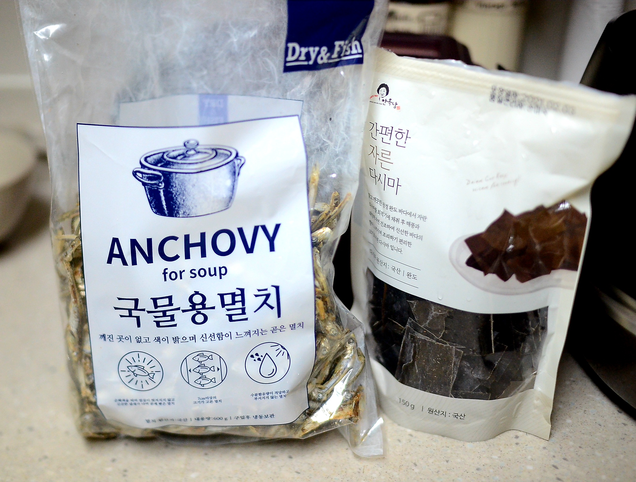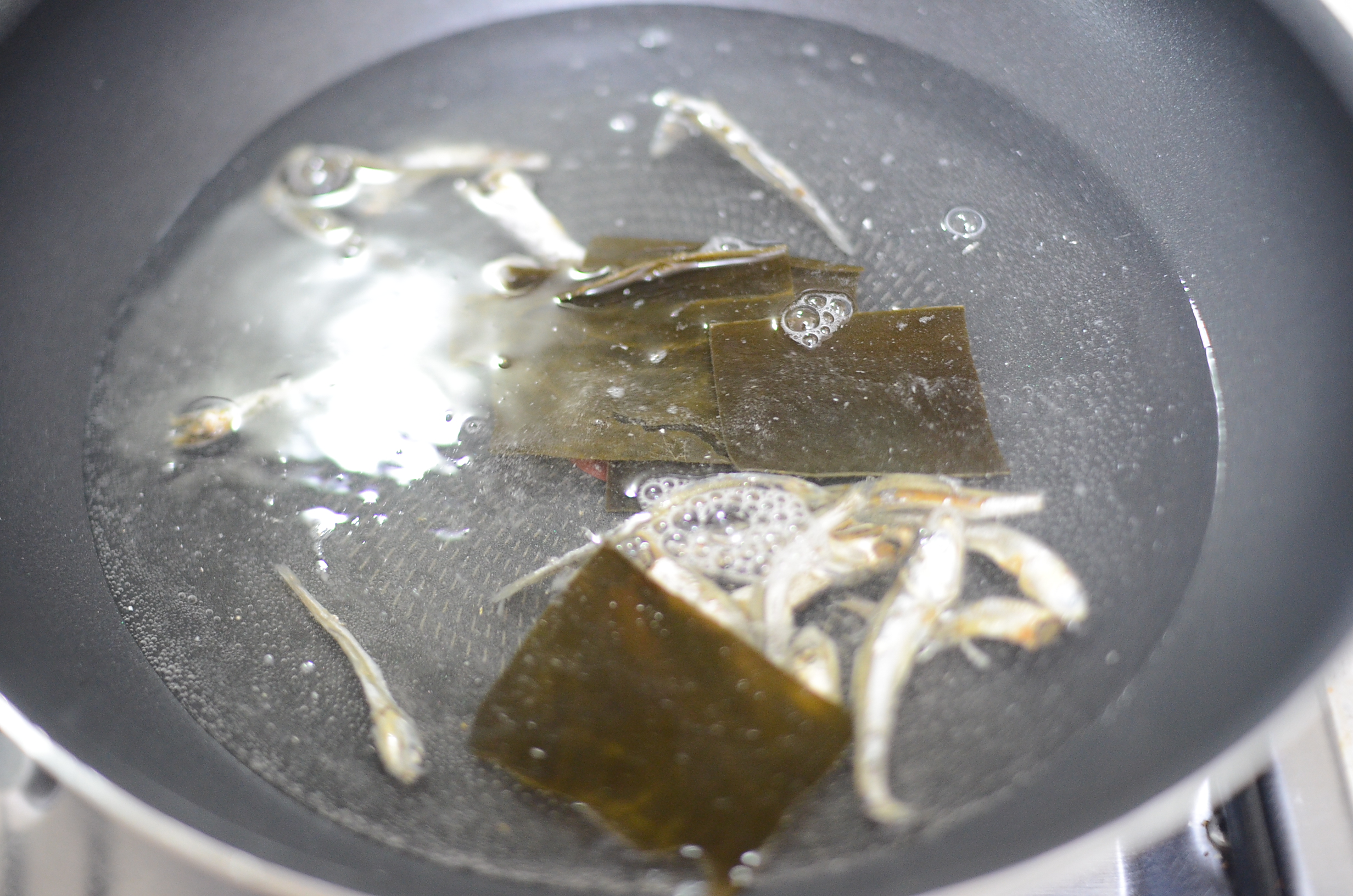 국물용 멸치와 다시마로 육수를 낼 준비를 합니다.