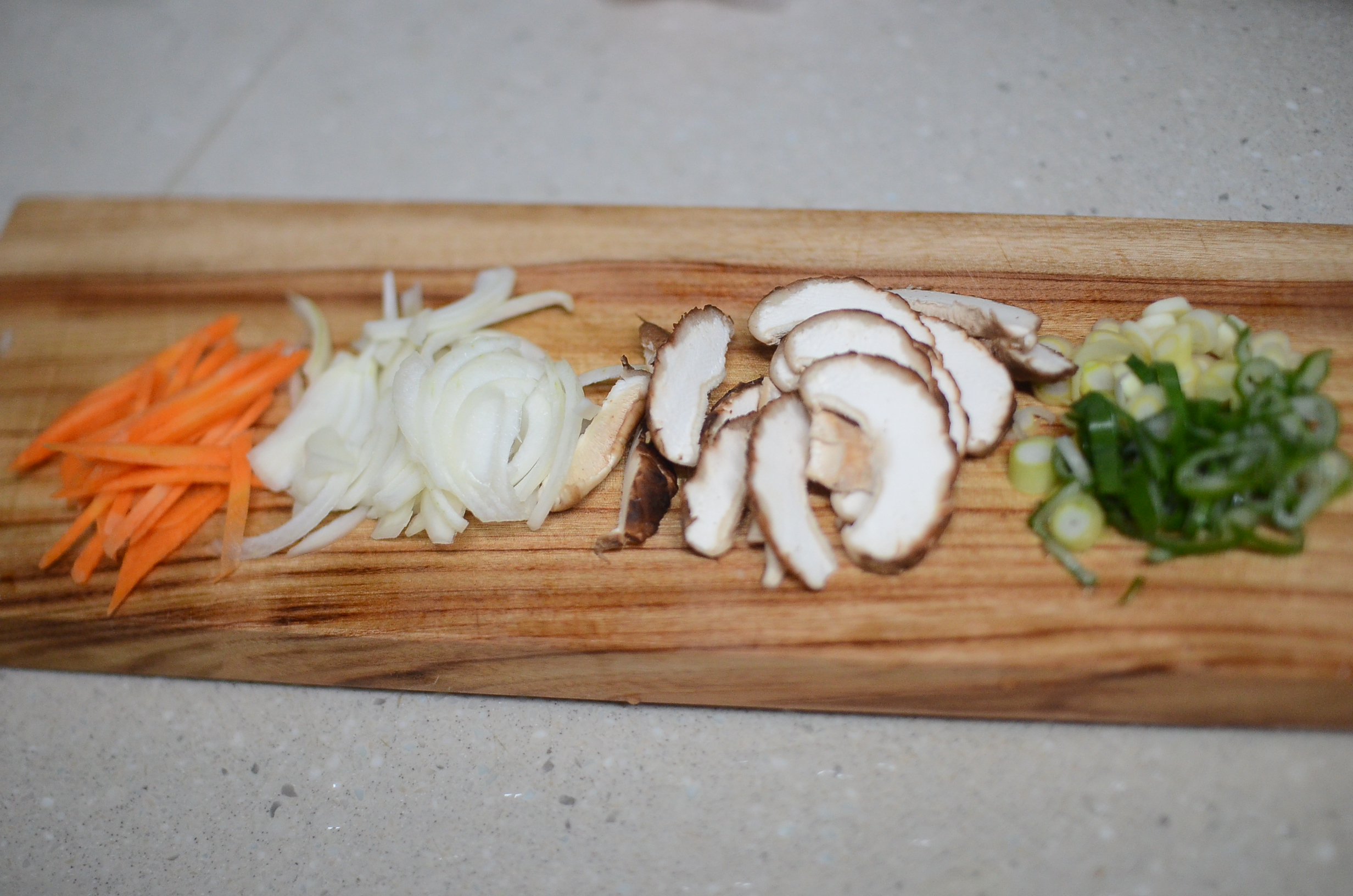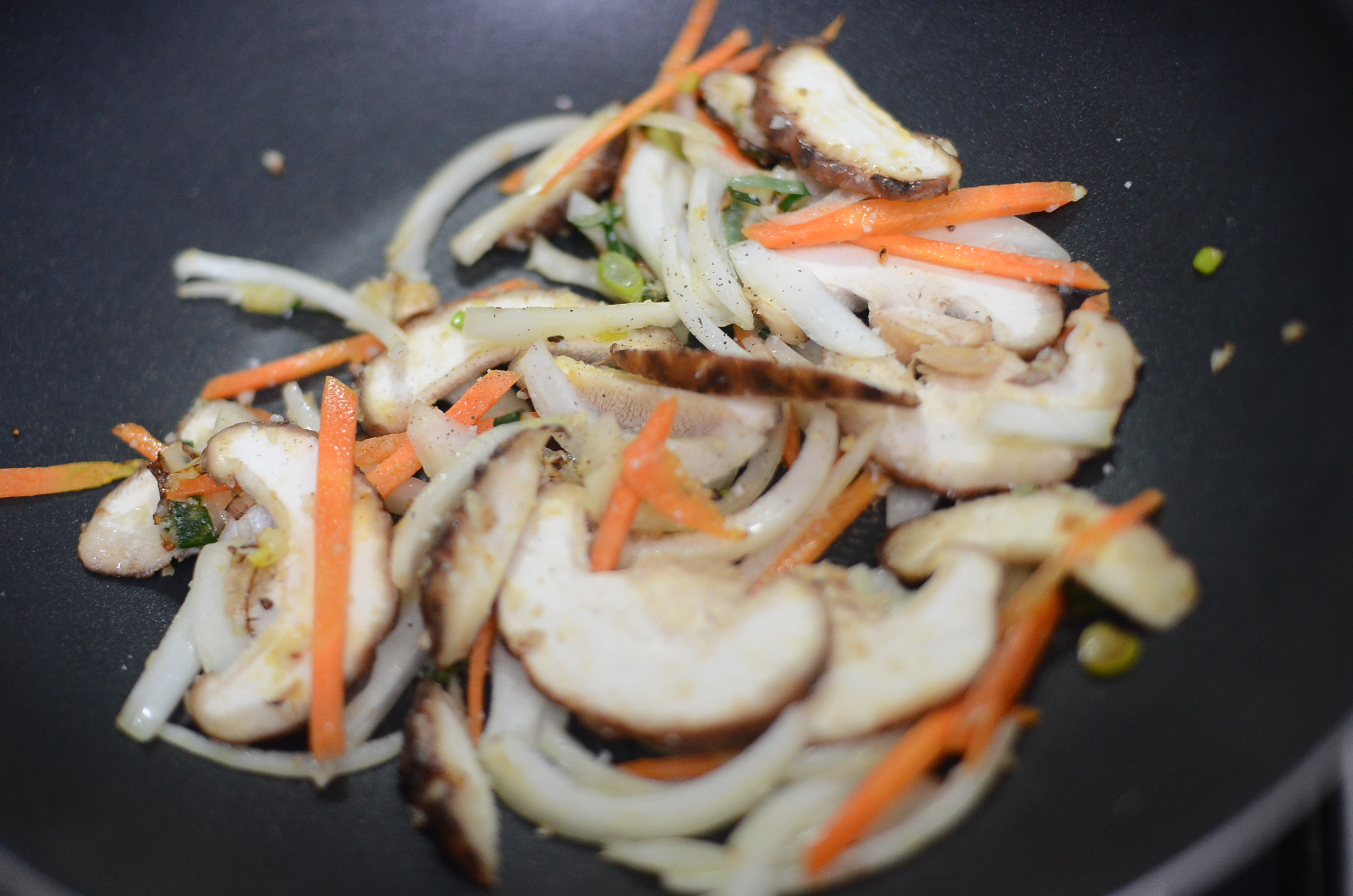 양파, 당근, 그리고 표고 버섯을 넣고 빠르게 볶음