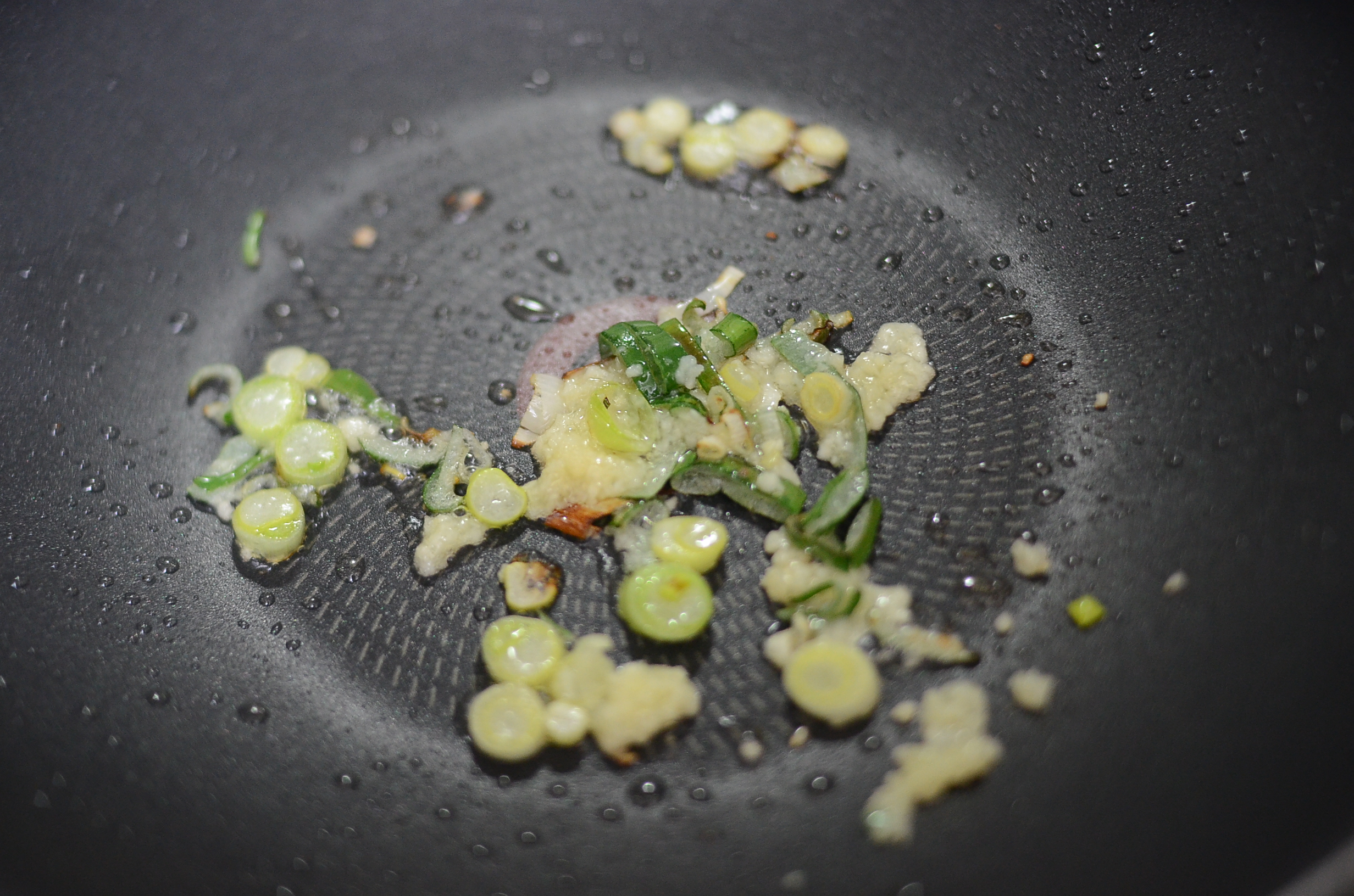 웍에 마늘과 파를 넣고 볶다가