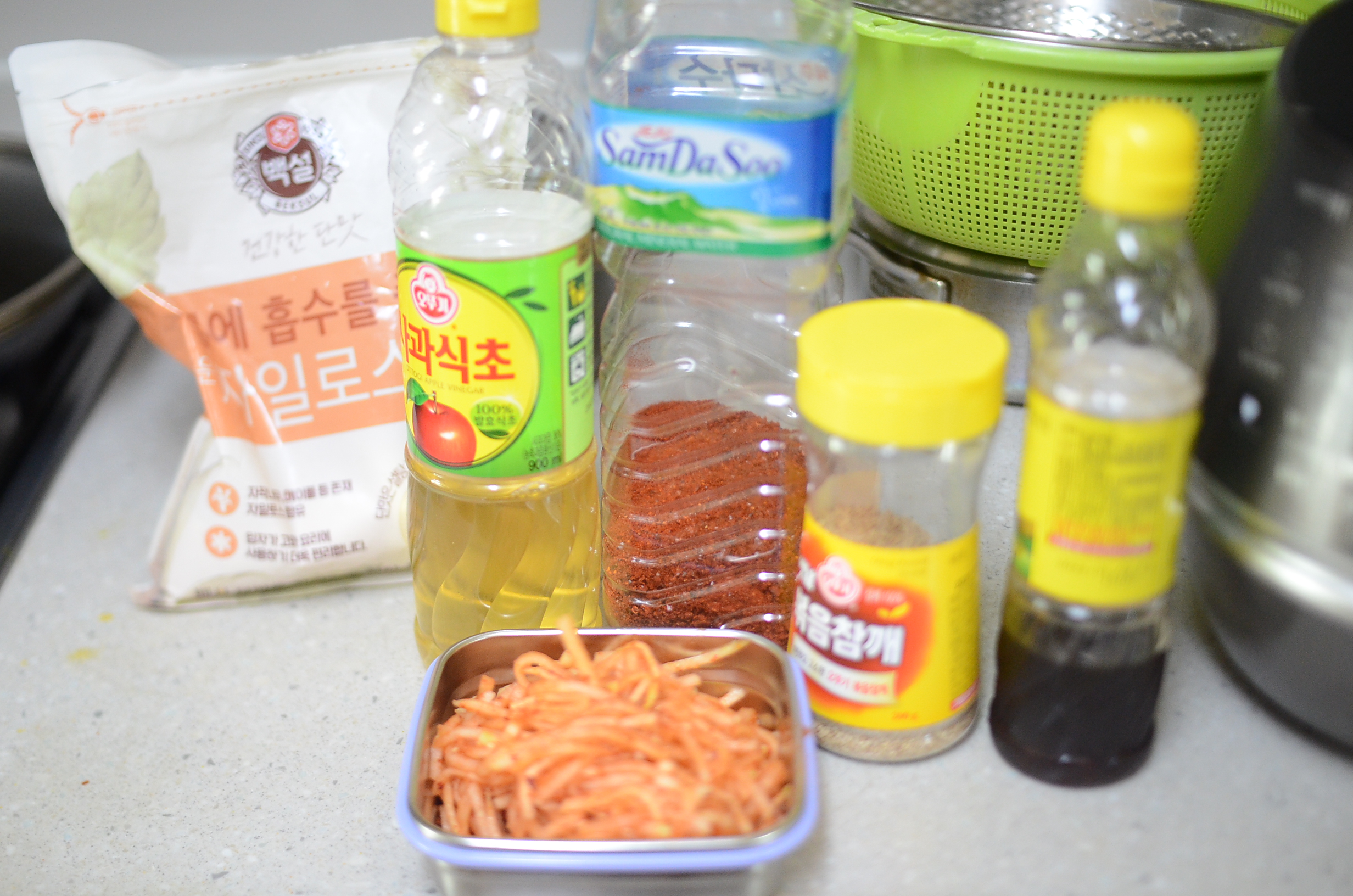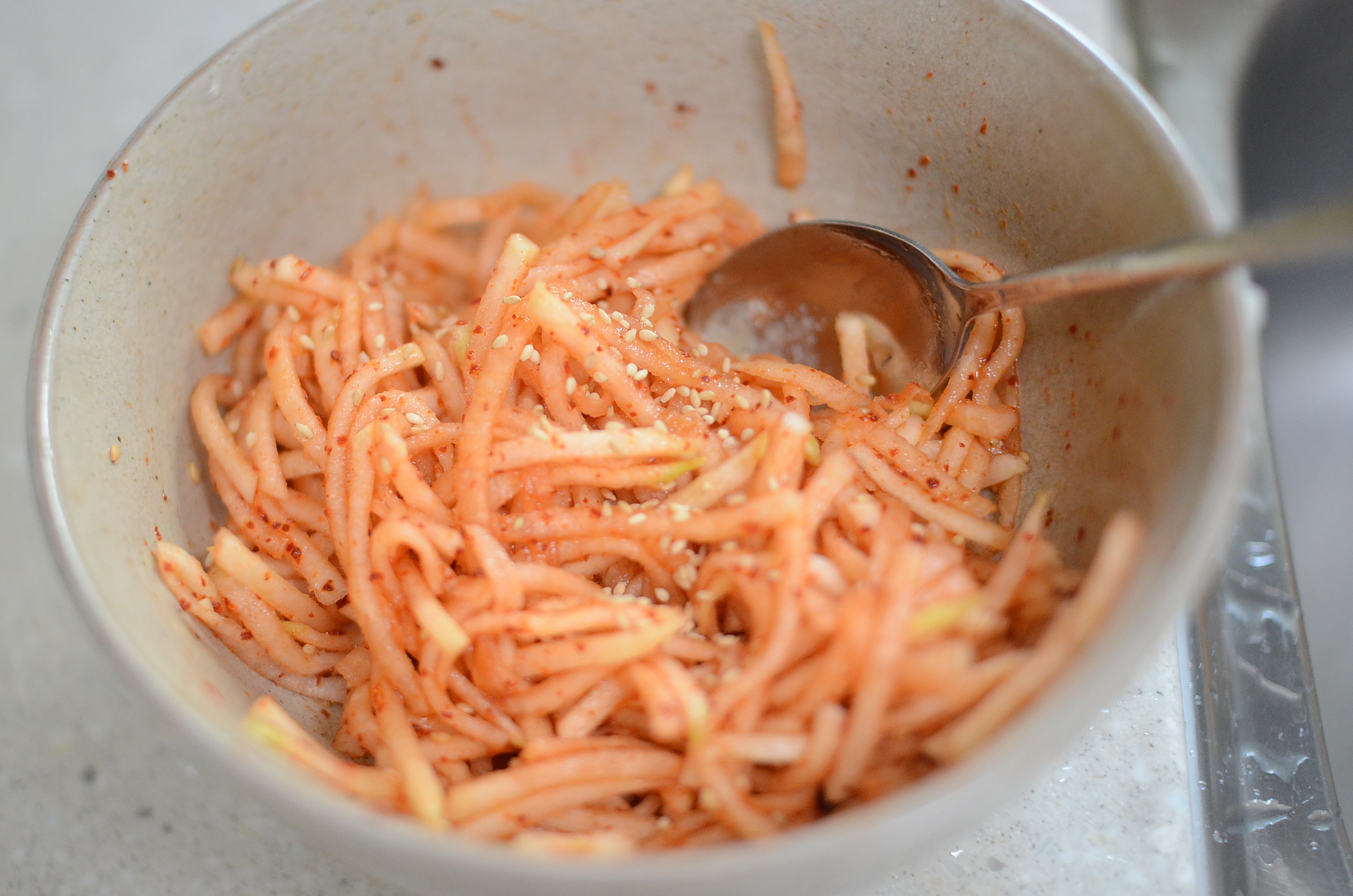 고추가루, 설탕, 매실액, 식초, 소금, 깨로 마무리 합니다.