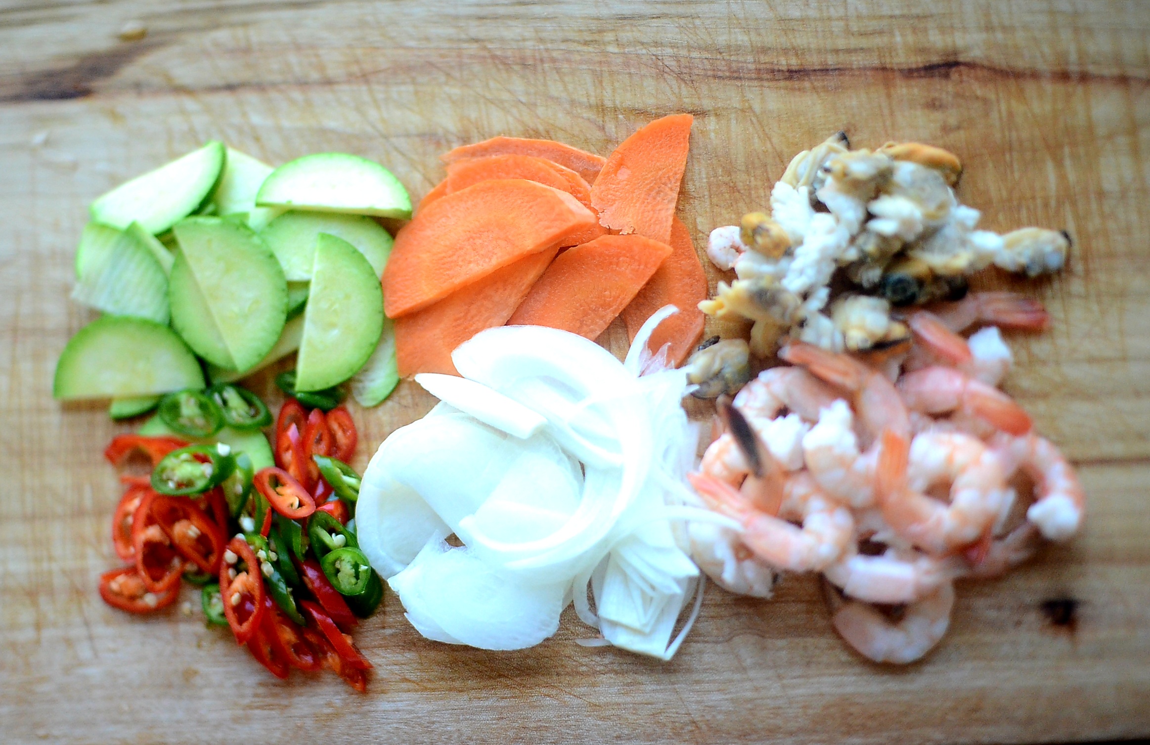 그리고 냉장고에 있는 야채를 꺼내고, 해물은 믹스로 사둔것을 약간 사용했습니다.