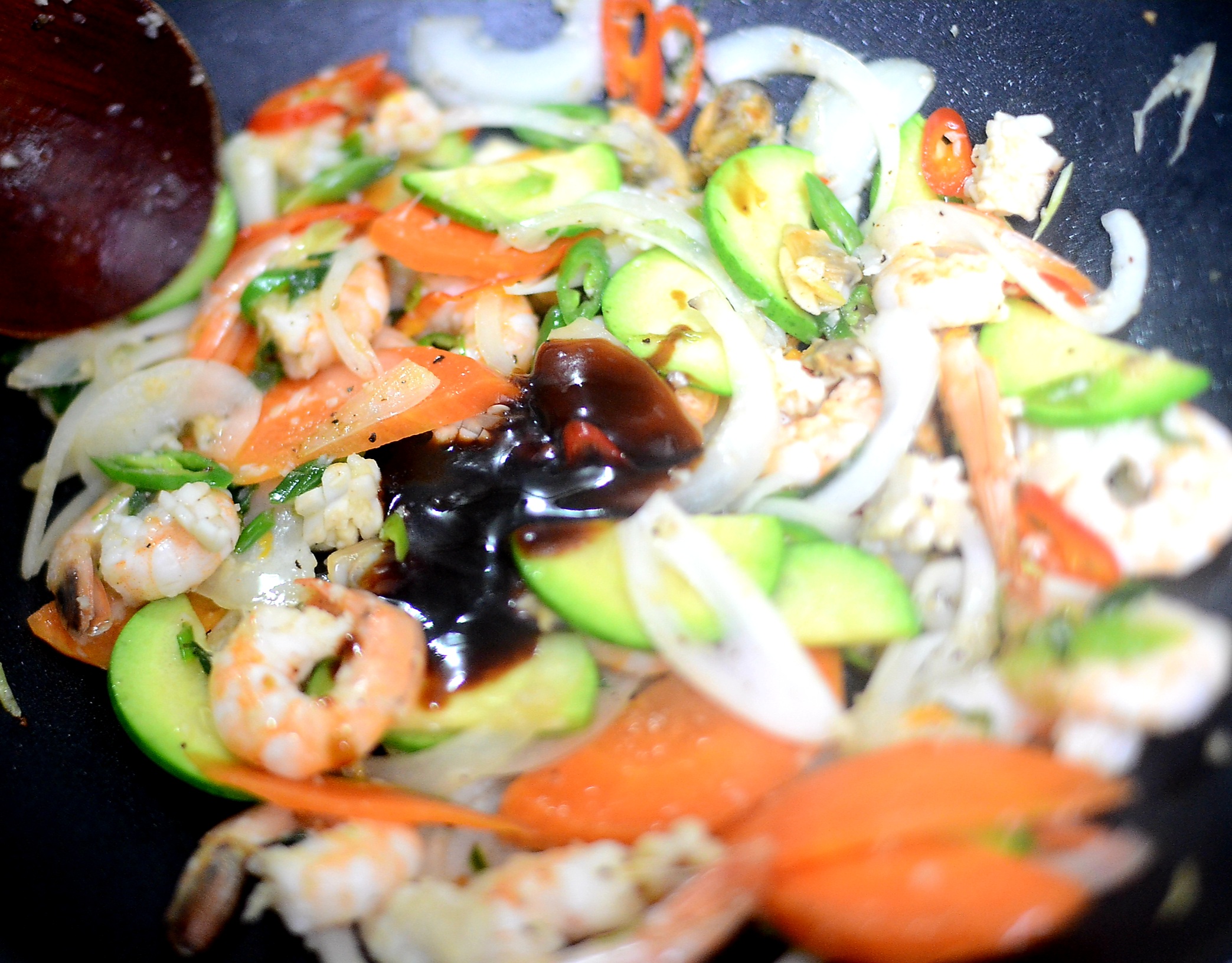 마지막으로 굴소스를 넣고 볶으면서 마무리 합니다.