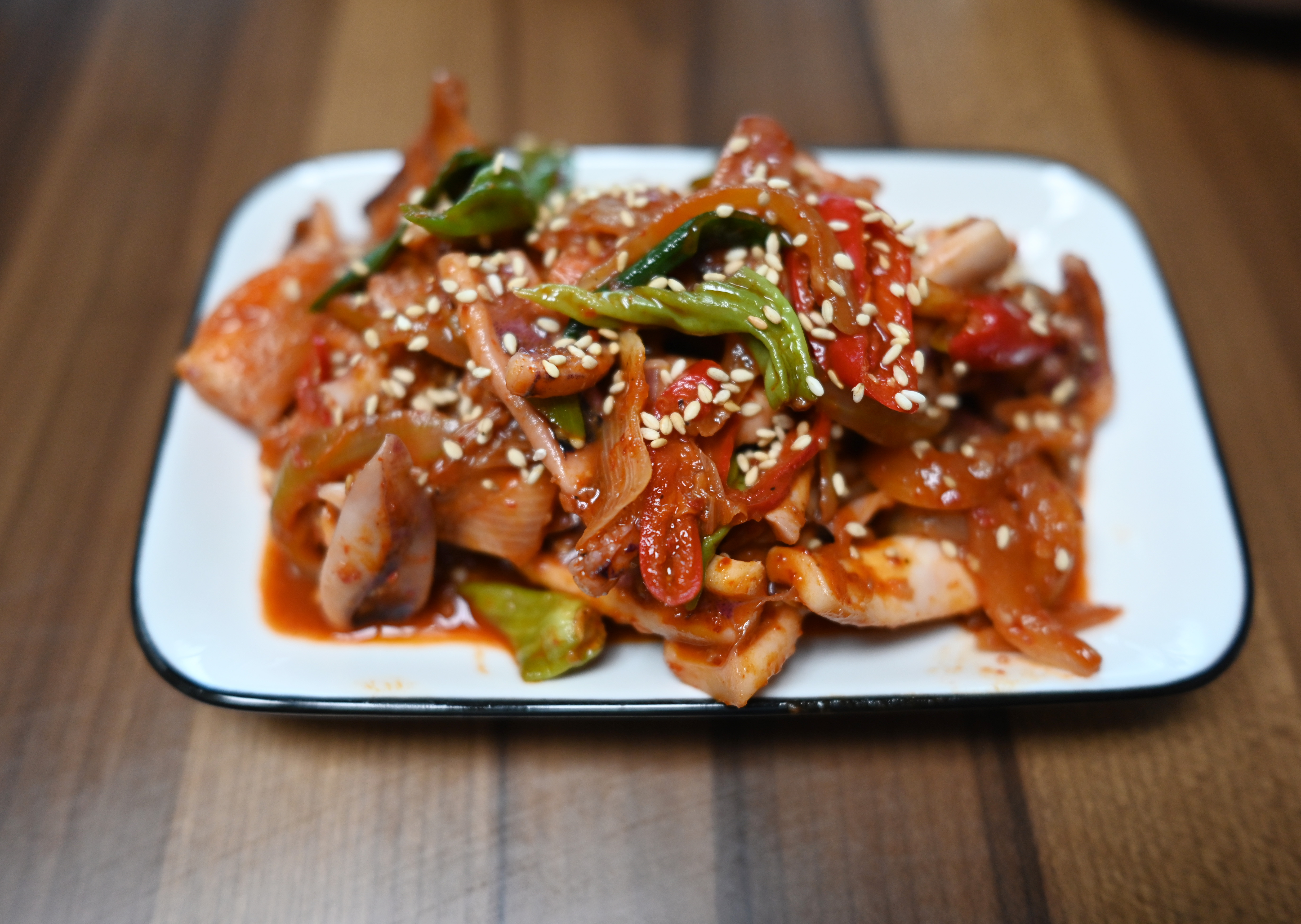 이렇게 먹음직스러운 오징어볶음이 나왔습니다.