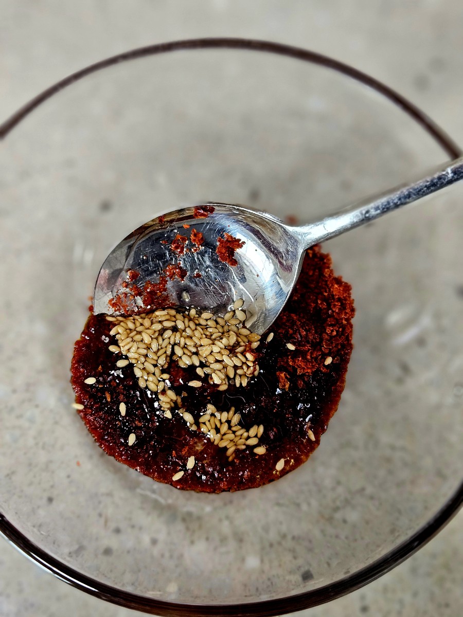 양념장 : 진간장 1, 마늘 1/2, 고추가루 1, 물엿 or 올리고당 1, 참기름 1, 통깨