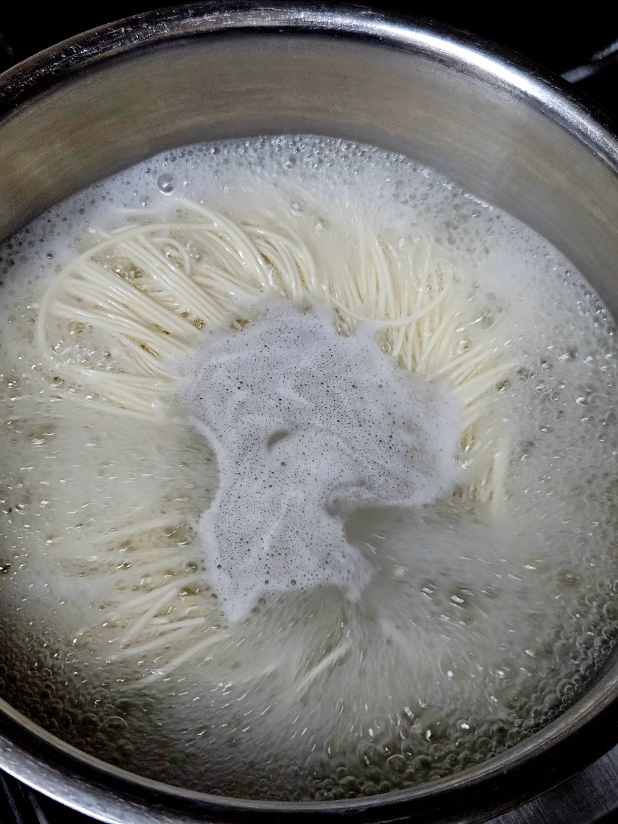 팔팔끓는 물에 소면도 삶아서