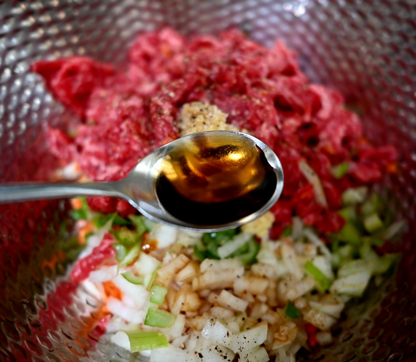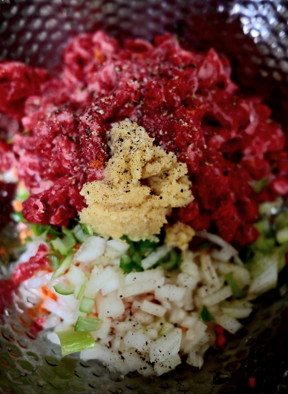 양념 : 후추 팍팍, 소금 약간, 설탕 1, 물엿 조금, 간장 3.5, 참기름 1, 깨 팍팍 (갈아서도 넣었어요), 맛술이 있다면 넣으면 좋아요