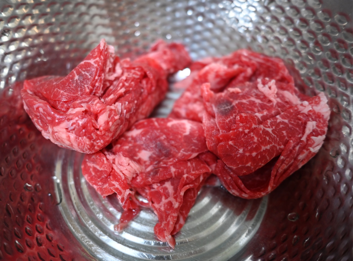 고기를 가위로 세로로 잘라서 양념이 잘 들어가게 해 줬습니다.