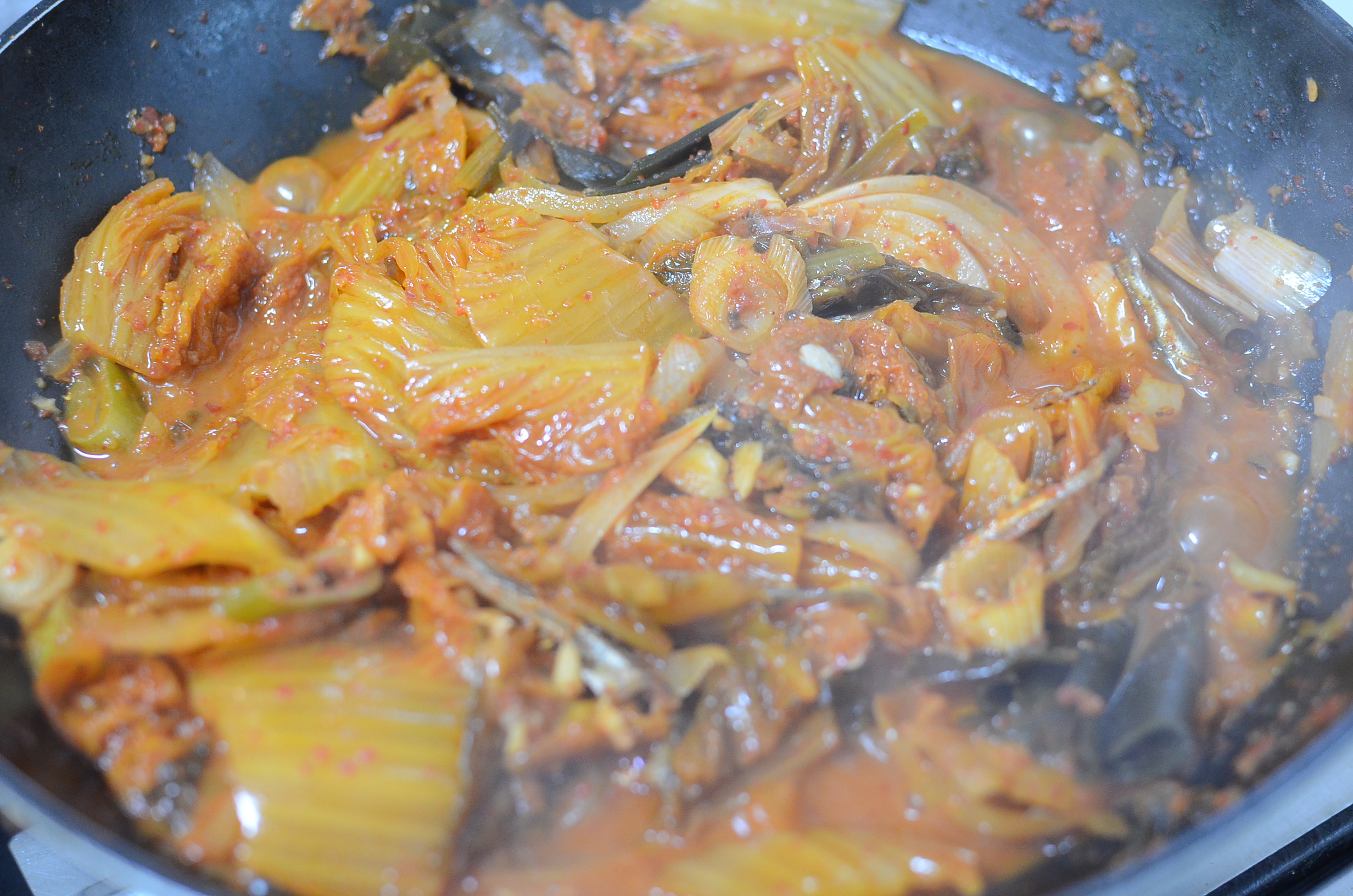 어느덧 먹음직스럽게 완성된 묵은지 김찌짐....