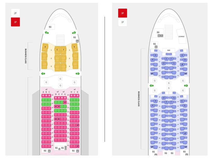 예전에 싱가폴에서 발리로 넘어갈때 탔던 KLM 보잉 여객기 배열이 2층 비즈니스 스위트와 구조가 같았는데