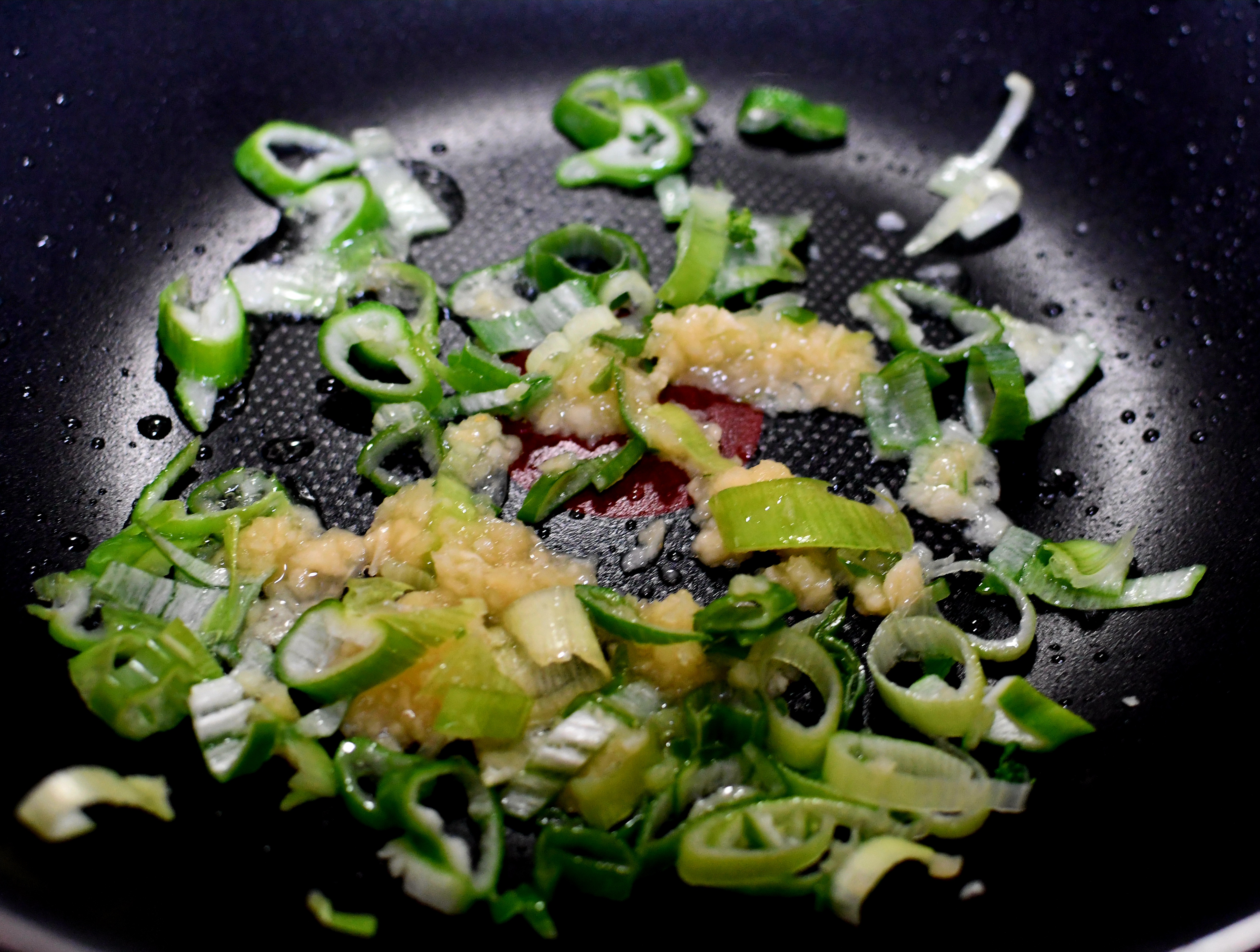 웍에 기름을 약간 두르고 마늘넣고 같이 볶아 줍니다.