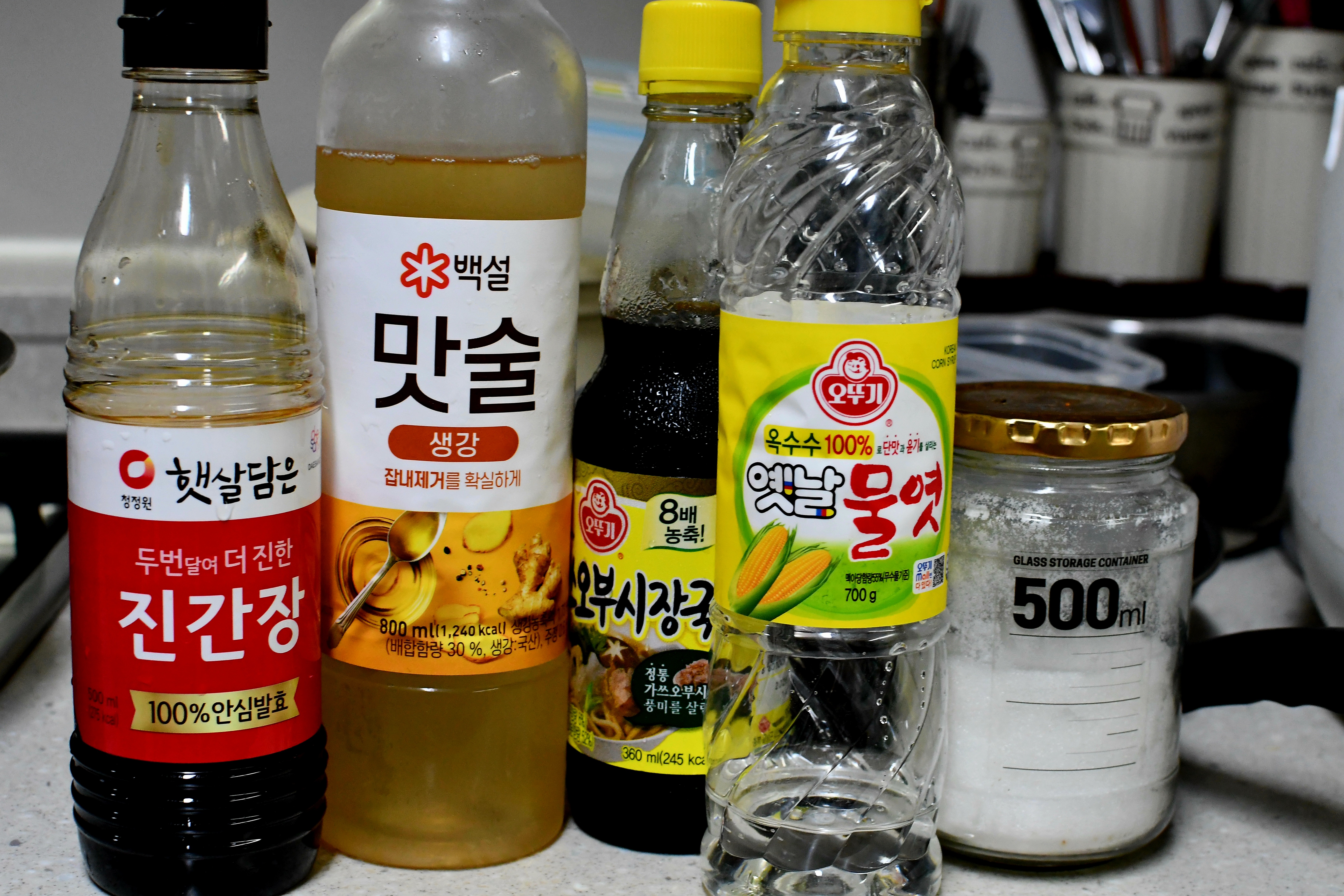 진강장, 맛술, 가쓰오부시장국 약간 , 물엿, 설탕 조금 사용할 예정입니다. 그리고 물.... 넣고 조릴꺼에요 촉촉하게